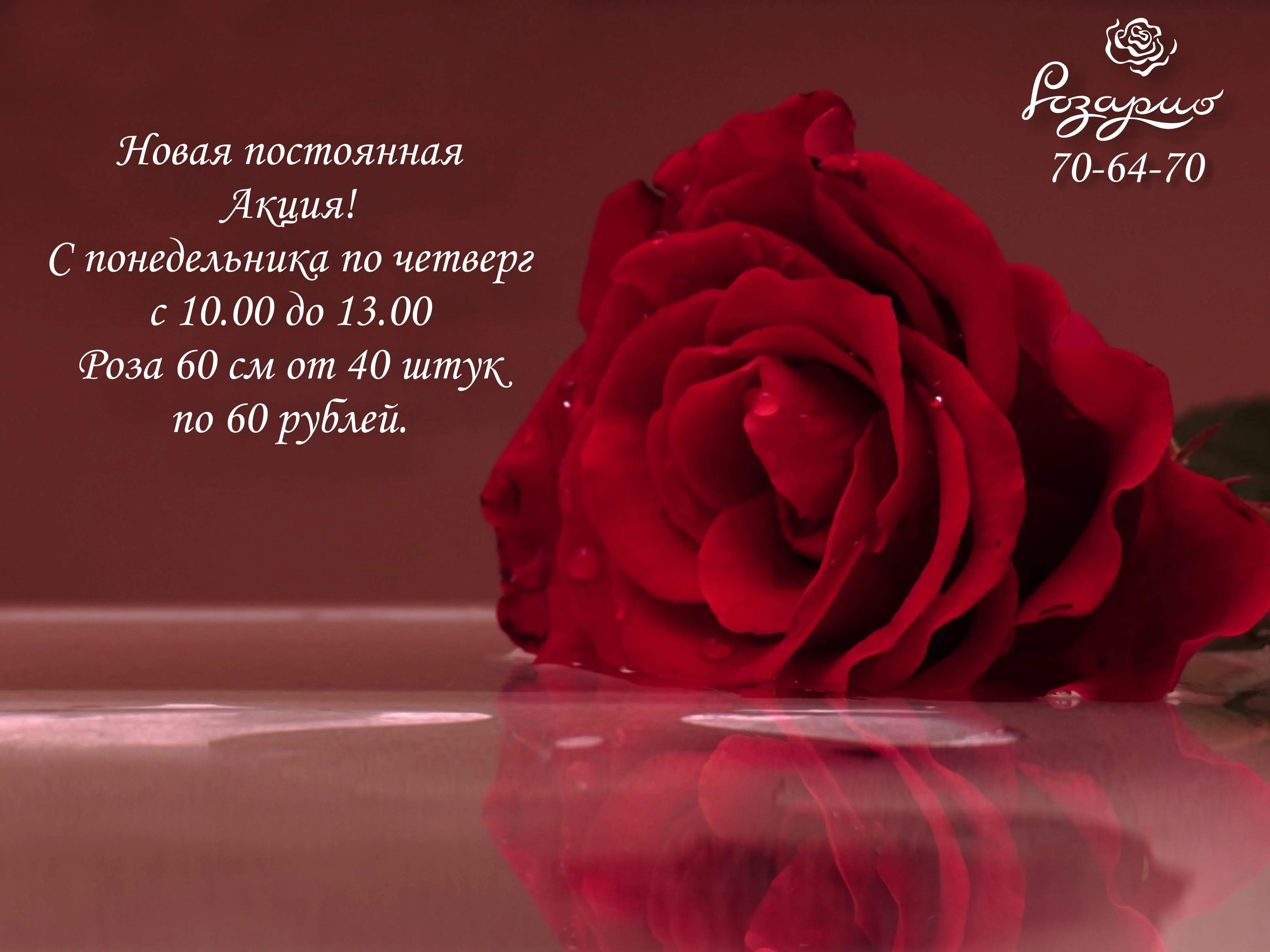 Самое время ДЕЙСТВОВАТЬ! С ПОНЕДЕЛЬНИКА ПО ЧЕТВЕРГС 10:00 ДО 13:00 РОЗА 60 СМ - 60 РУБ...